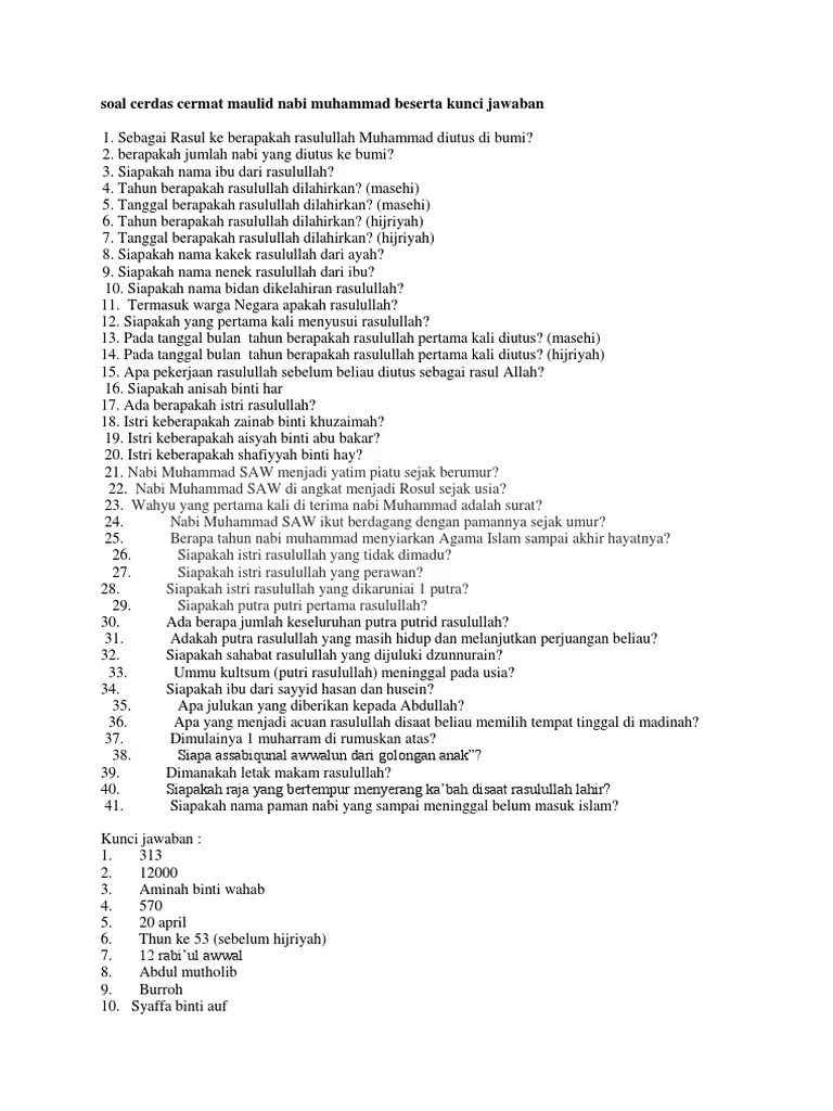 Soal cerdas cermat islam maulid nabi sekolah dasar sd kelas 5.